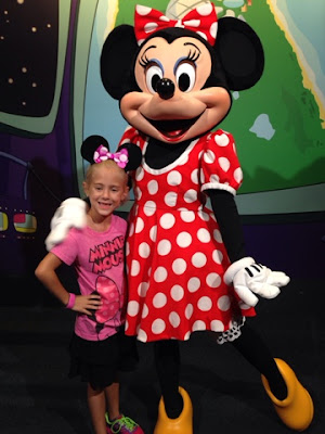 We rode the test track roller coaster where I learned that my girls have no fear and are adrenaline junkies. They were in love with how fast it went. After the test track, we had a quick dinner and then headed over to meet Mickey and his friends.